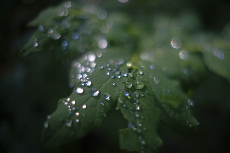 Dew collects on a twisted stalk bush on Tuesday, July 17, 2018 along the Mt. Ripinski Trail in Haines, Alaska.