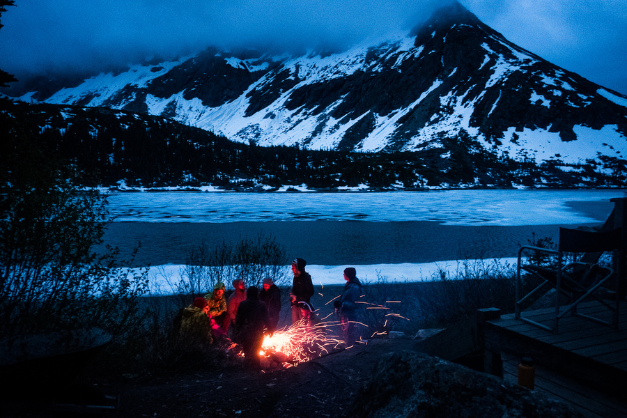Seasonal guides and locals share a campfire at 3700ft next to Upper Dewey Lake above Skagway, Alaska on Sunday, June 10, 2017.